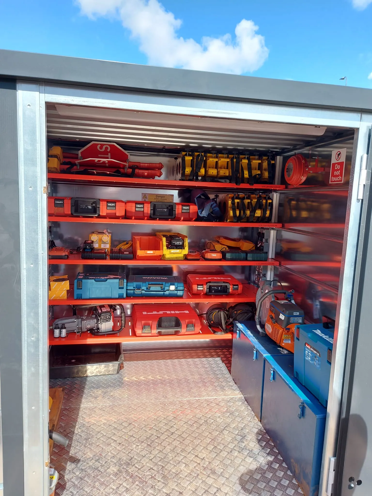 Designed with security at its core, the PWR1 is built from heavy-duty folded sheet steel and features twin 5-lever deadlocks to prevent unauthorised access. Inside, it offers 32 individual sockets across 5 fixed shelves, making it ideal for charging multiple tools and equipment in a controlled environment. It runs on a single 32A / 230V supply and arrives pre-assembled for fast, hassle-free setup.