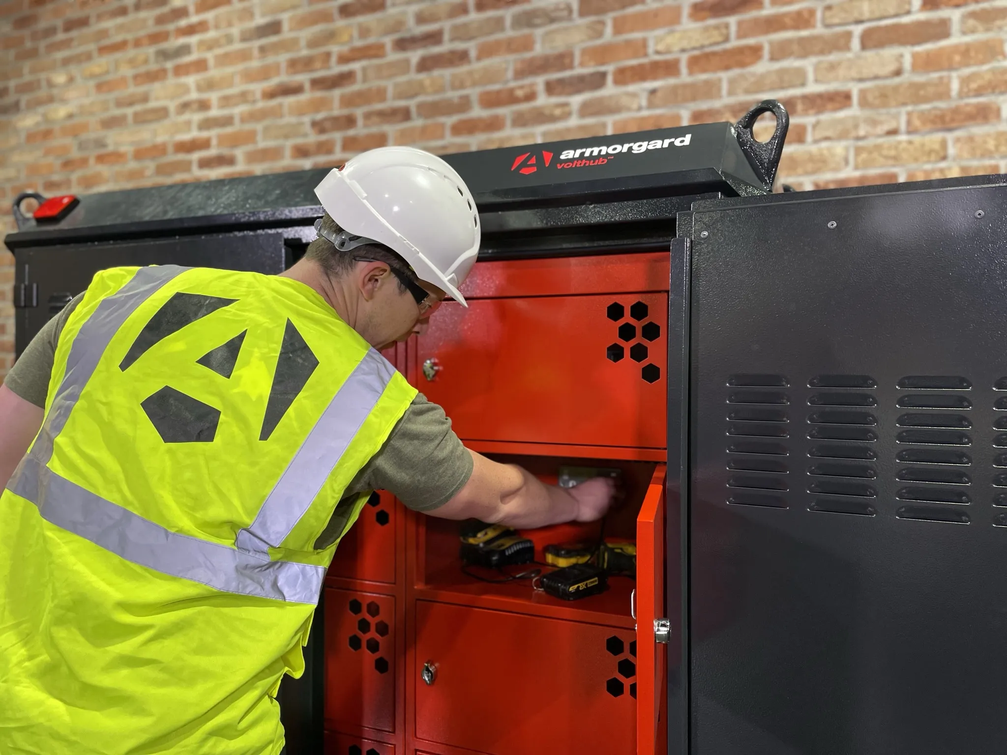 The VoltHub VH16-110 features 16 RCD trip-protected double gang sockets, allowing up to 32 batteries to be charged simultaneously. If a fault occurs in one compartment, power is isolated to that compartment alone, allowing other batteries to continue charging without disruption. The unit also features larger lockers to accommodate larger batteries.