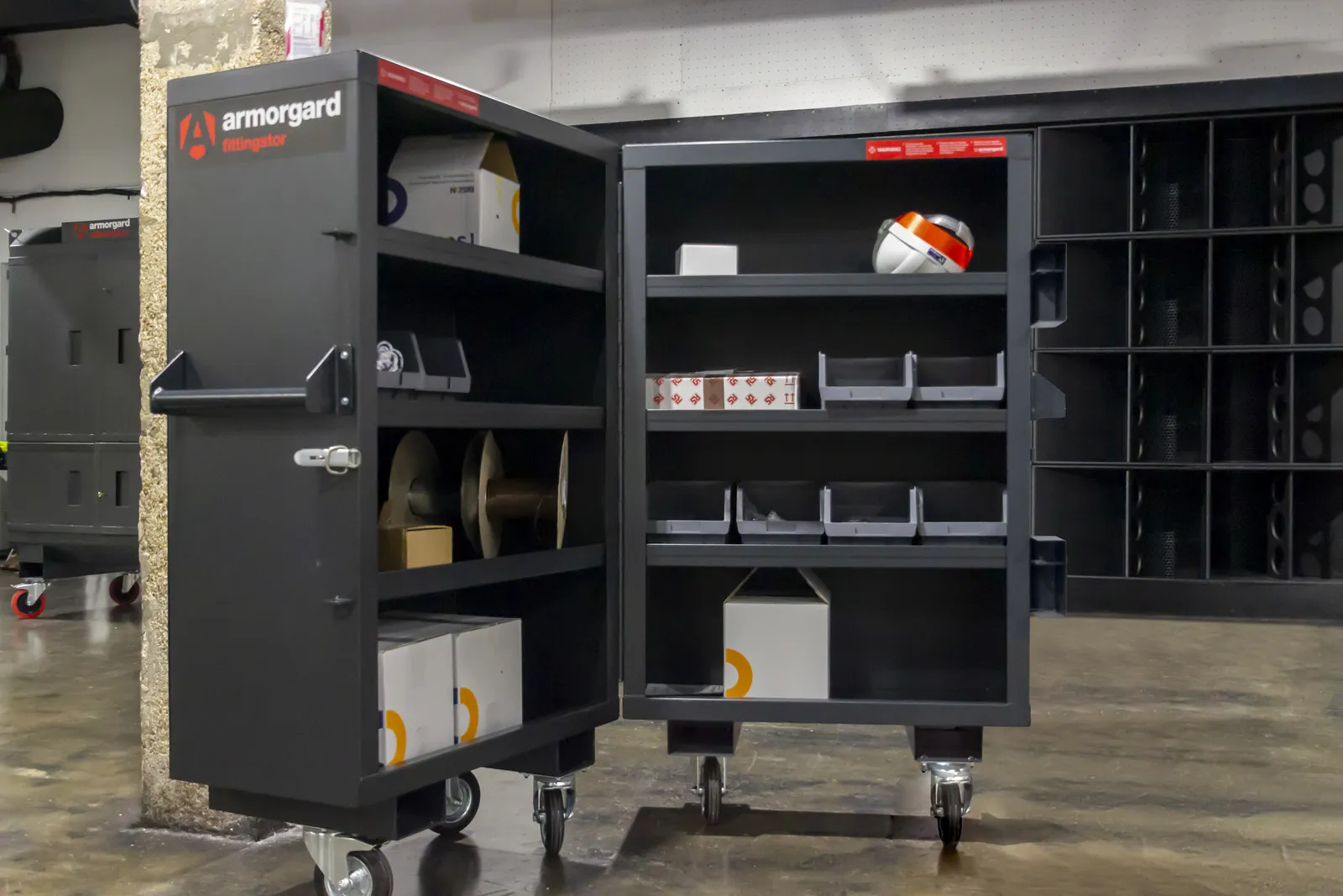FC5 is an ideal solution for those looking to effortlessly organise their site or workspace. Its bi-folding design simplifies access to tools and equipment, enhancing overall organisation and productivity on site. Elevate your FC5 even further by incorporating the optional extra fittings bins to neatly store smaller items in one designated place.