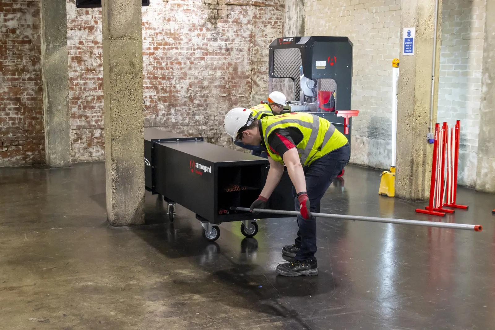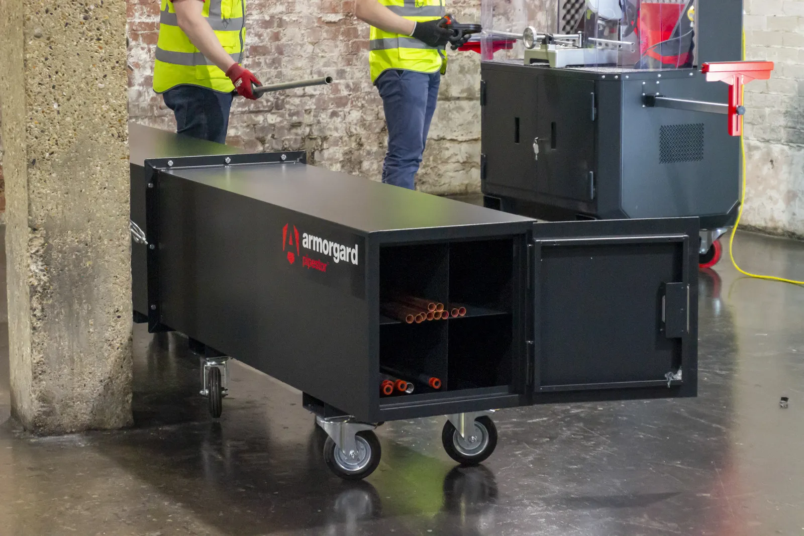 The Pipestor PS3 is a secure mobile trunk for securing long lengths of pipe and conduit of up to 3 metres long and has four compartments inside to help organise materials.